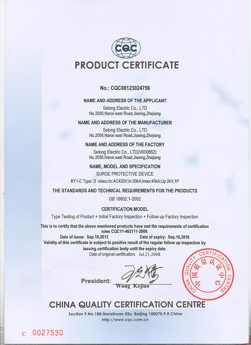By7-40-275 & 440 (1 ~ 4P) CB certificate