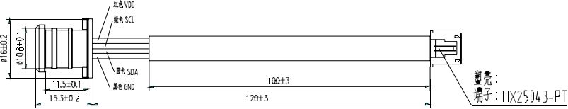Plastic: HX25043-4P(white) Connector:HX25043-PT Wire:4P color line,26AWG |