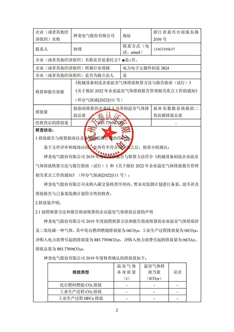 碳核查报告(必一电气股份有限公司)-2019年-公示