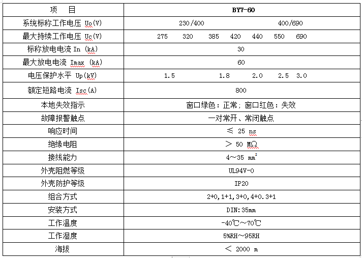 主要用于交流电源系统中各类配电箱等用电设备的雷电防护。